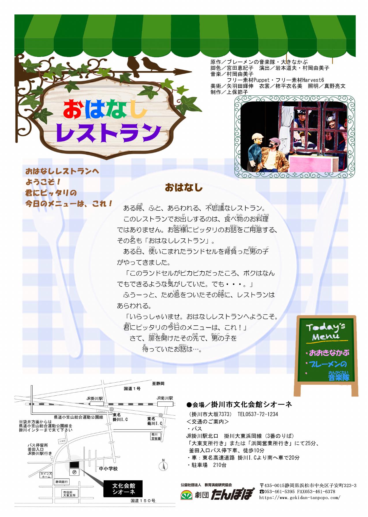 総合TOP 新着情報 2026年1月24日(土)劇団たんぽぽ公演 in シオーネ おはなしレストラン